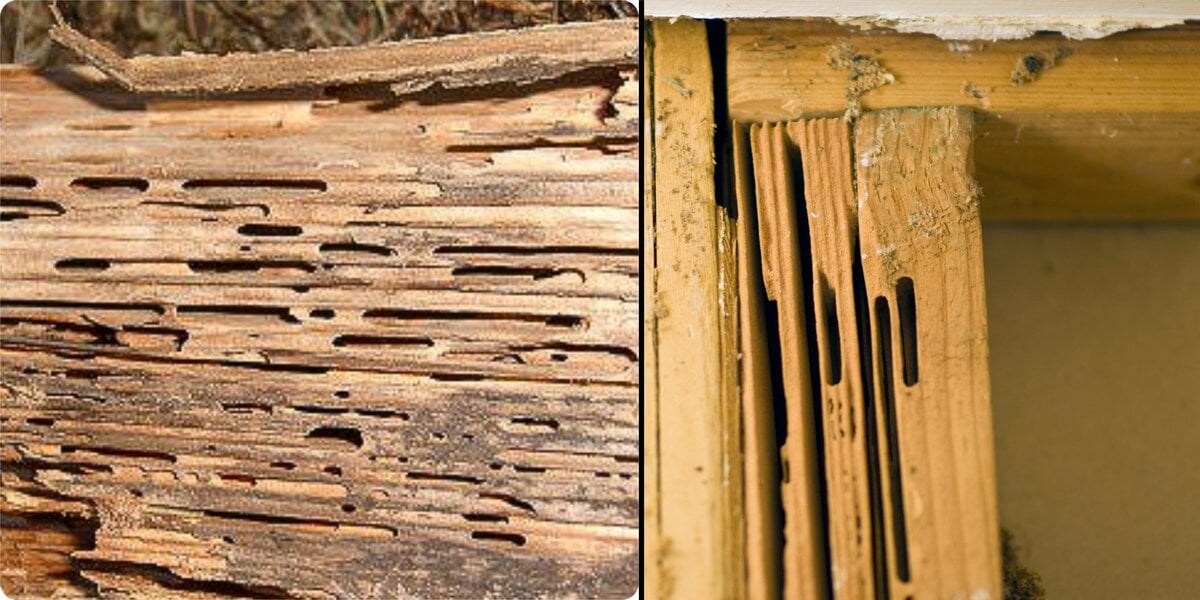 - Soft or Hollow Wood – Wood that feels spongy, weak, or hollow due to hidden tunneling or structural damage.