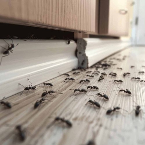 Ants enter homes in search of food, water, and shelter. Small gaps around doors, cracks in concrete, plumbing penetrations, moisture issues, and even pet food can attract them. Once a few ants find resources, they leave a pheromone trail for others to follow, causing a rapid increase in activity.