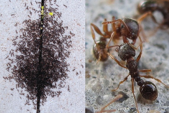 Pavement ants are social insects that live in colonies consisting of workers, queens, and reproductive ants. Colonies are typically located outdoors under concrete, but workers regularly travel indoors in search of food and water.